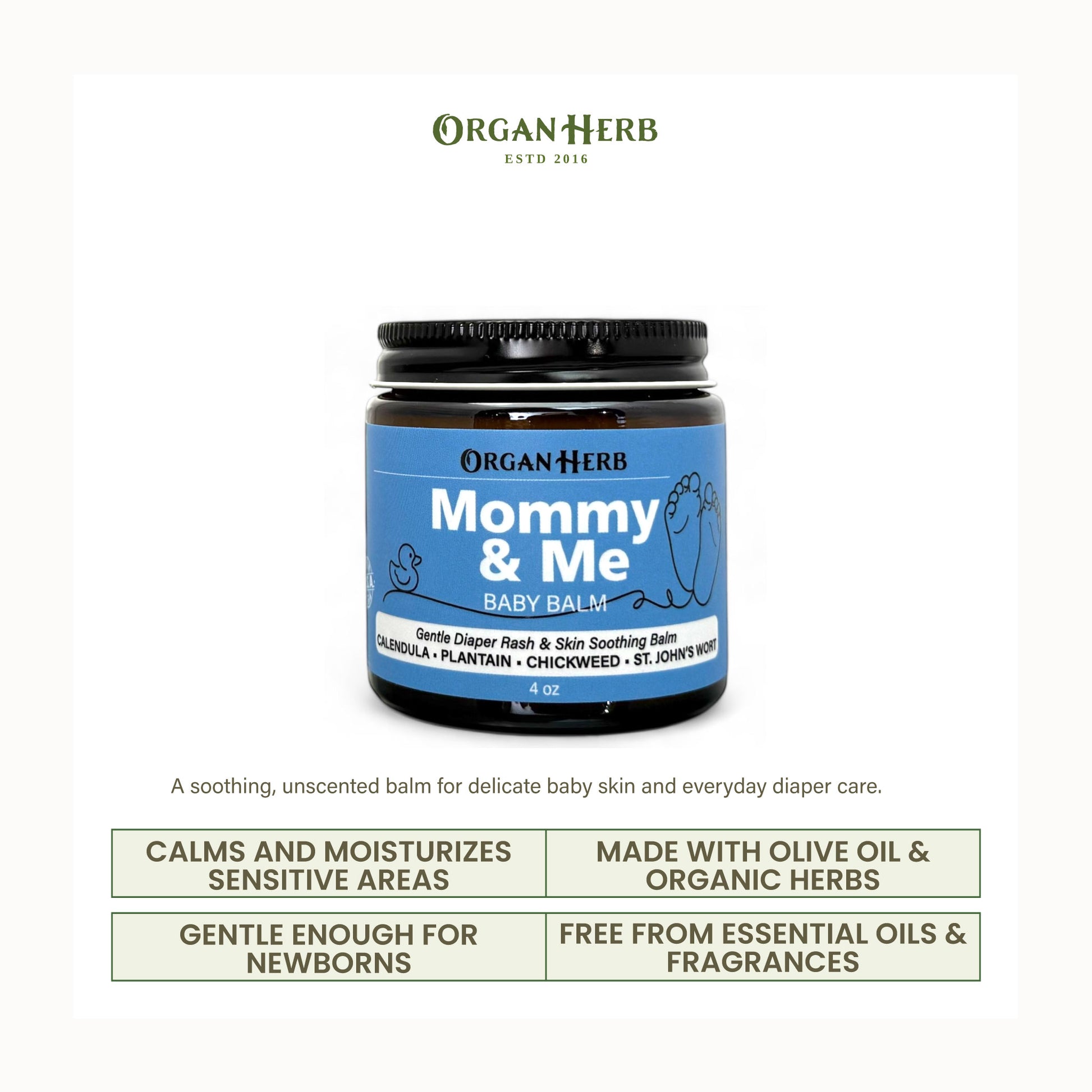 OrganHerb Organic Mommy & Me – Baby Balm with Calendula, Plantain, Chickweed, St. John's Wort – 4 oz